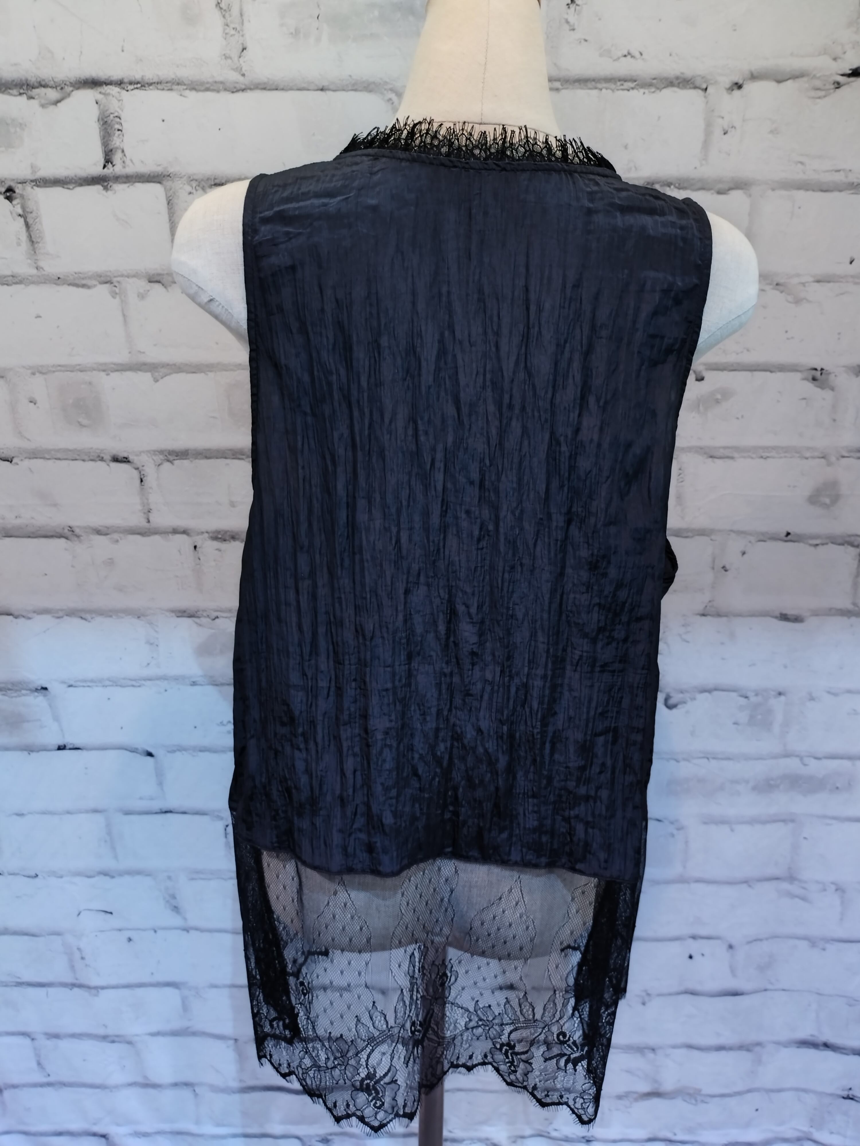マットサテンとレースのコンビネーションが生み出す、ラグジュアリーなジレは、特別なシーンから日常のコーディネートまで幅広く活躍します。