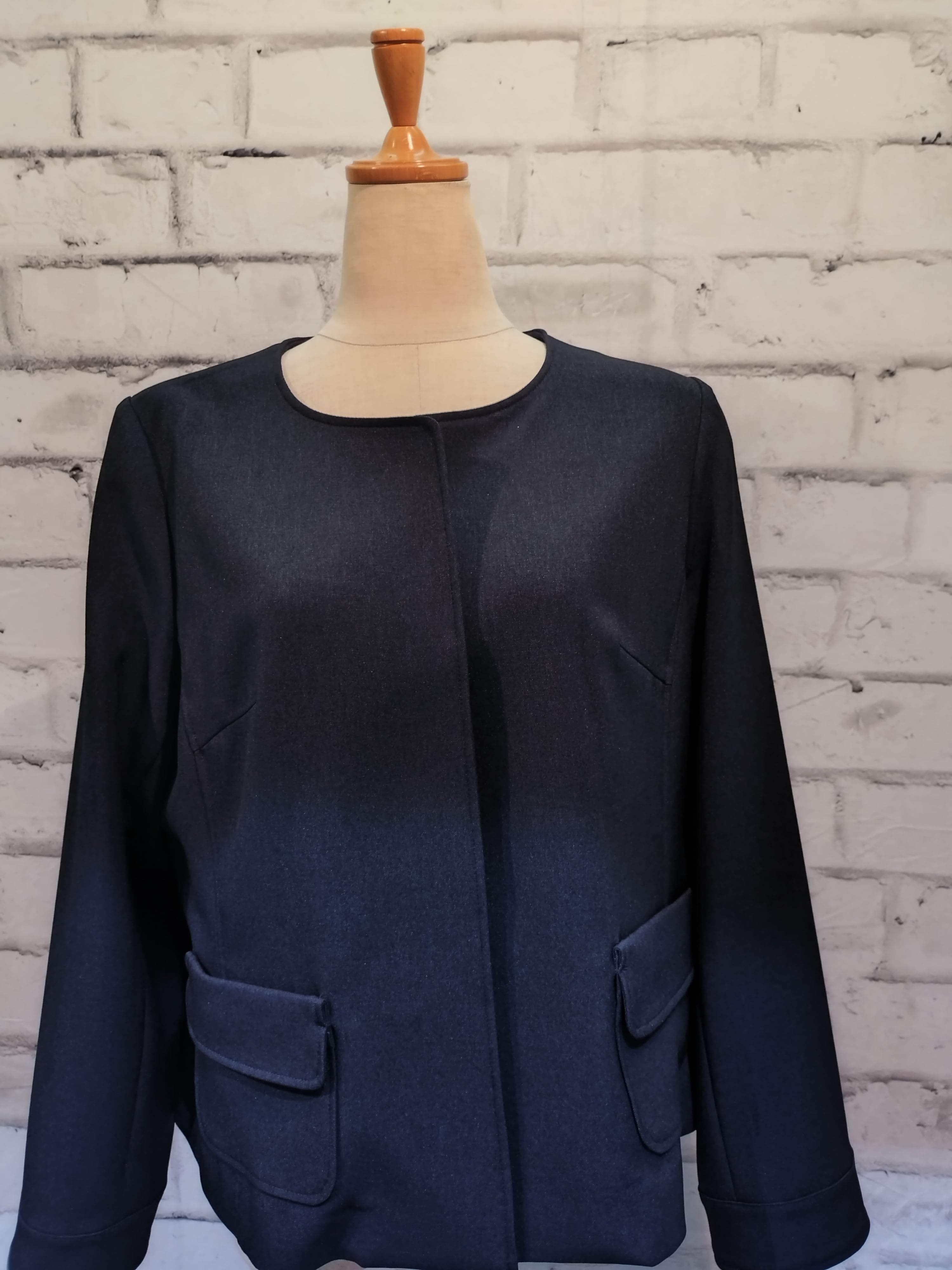 このジャケットは、ストレッチ素材を使用しており、着心地がとても良いのが魅力です。また、ポケットがアクセントとなり、かわいらさを演出しています。カジュアルなコーディネートにも、ビジネスシーンにもマッチするスタイルです!
